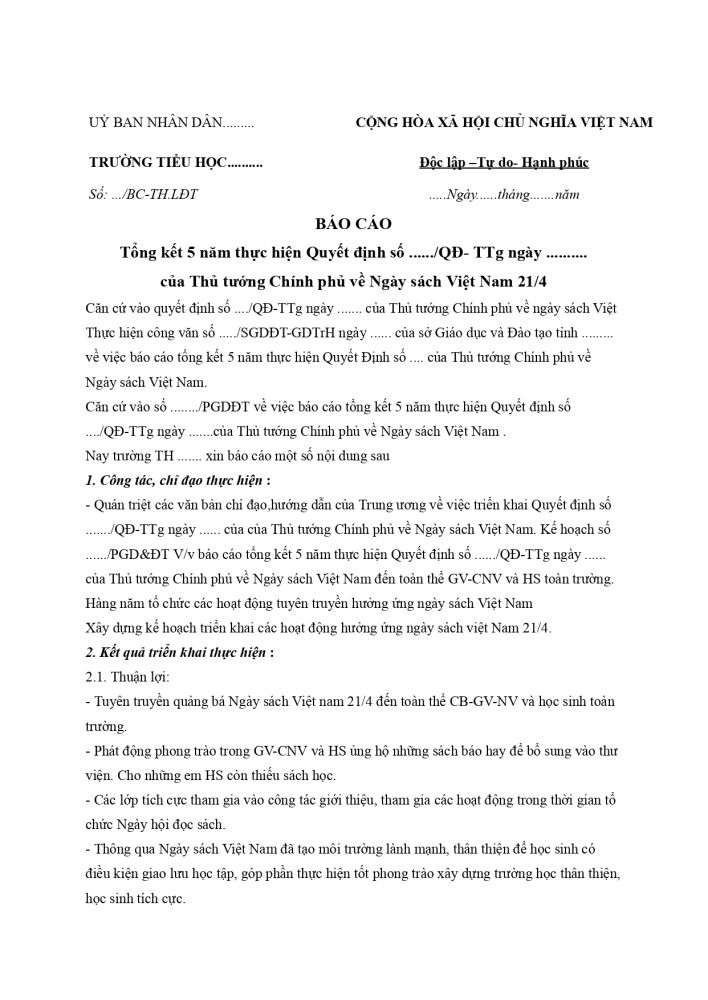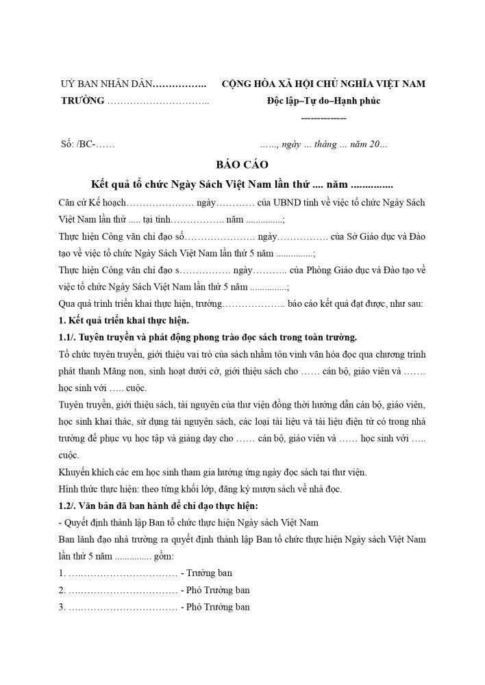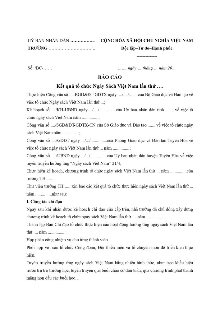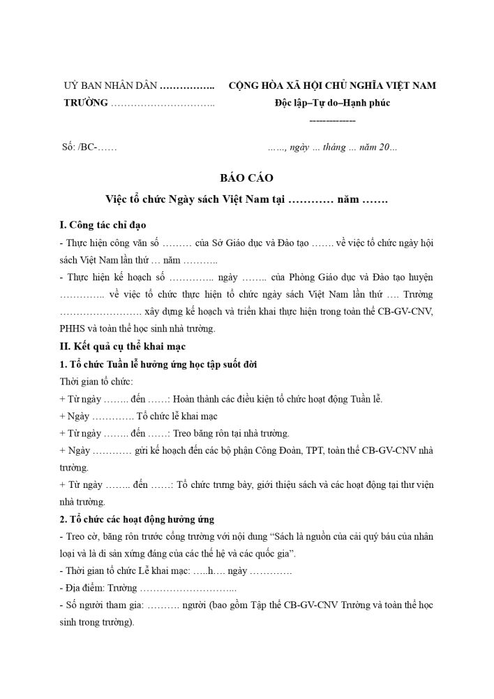1. Mẫu báo cáo Ngày sách Việt Nam